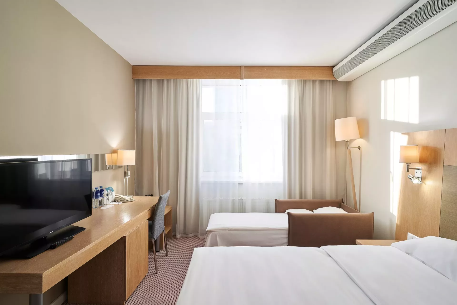 Наши многофункциональные конференц-залы станут прекрасной площадкой для проведения бизнес-конференций и семинаров или деловых встреч – они легко трансформируются в переговорные комнаты